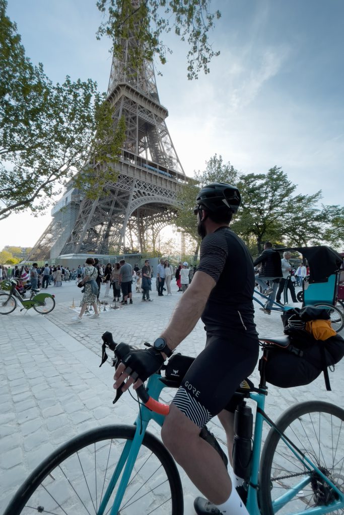 Il reste 20 km, nous voilà dans un parc surplombant la capitale. En face de nous, en petit, la tour Eiffel. On l’a fait, ou presque. Bryan le réalise maintenant et Fiona quelques kilomètres avant. Mais à ce moment-là, un même sourire bêta s’accroche à nos visages. Nous en profitons car les derniers kilomètres se feront dans la cohue parisienne. Par-ci la Foire du Trône, par-là les nombreux autres touristes qui empiètent sur les quelques voies cyclables. L’arrivée à Paris, comme pour notre voyage jusqu’à Barcelone, n’est pas comme dans les films qu’on s’était faits dans nos têtes (et encore moins comme dans Emily in Paris pour d’autres…;-)). Peu importe, c’est le chemin qui compte, l’arrivée, comme à chaque fois, n’est qu’un (très bon) prétexte.
